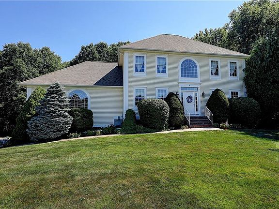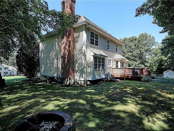 This stunning colonial is perched perfectly on just over an acre lot located in the desirable Hunters Knoll neighborhood, overlooking amazing sunsets and having all the conveniences one could ever want. Step inside the grand foyer entry to a beautiful, naturally lit home. Hardwood floors flow throughout the home's main level with a formal dining room complemented by wainscoted walls. A fully applianced eat-in-kitchen, a gas stove and granite countertops with a center island open up to a spacious breakfast area with sliders that open to the rear deck. An oversized family room with vaulted ceilings an additional set of sliders. A formal living room is where a grand piano lives for holiday gatherings. Glass french doors open up to a warm and relaxing sitting room with a wall of window seating, recessed lighting and the home's wood burning fireplace. A half bath located just off the kitchen completes the first level. Retreat to the second level is the home's primary suite with a large walk in closet, a private bath with double vanity sinks and a large shower. Open to below is a hall with a full tile bathroom with storage and a laundry closet. Two generous size bedrooms, each with ample closet space, complete the second level. A full walk up attic for additional storage or possible expansion. The home has a full unfinished walkout basement with a two car garage, sprinklers, alarm system and an outdoor jacuzzi tub and a yard shed for additional storage.