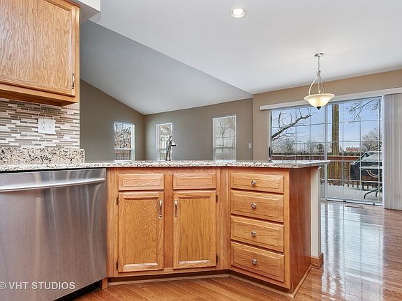 JUST WHAT YOU'VE BEEN WAITING FOR....Gorgeous, rarely available, bright and open END-UNIT townhome sporting some serious style. Stunning kitchen updates include showroom granite with extended breakfast bar countertops, linear polished glass mosaic backsplash, high-end Samsung appliances, hardwood flooring, and modern yet practical recessed lighting. Brilliant rustic wood dining room accent wall! Sliding glass doors lead to your private wood deck. Dramatic vaulted ceilings, fresh paint and natural light in all 3 spacious bedrooms. Generous sized walk-in master closet. Wrought iron staircase spindles. Beefed-up real wood baseboards. Full finished basement with fresh paint and upgraded carpet. New insulated garage door. Newer roof and oversized downspouts. Move-in, relax & enjoy maintenance free living!