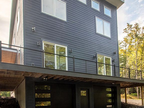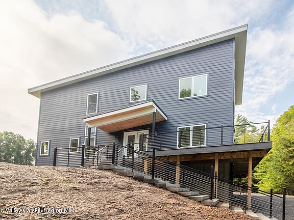 Tucked away on a quiet cul-de-sac in the desirable town of Hurley, this newly built modern home offers the perfect blend of peaceful country living and convenient proximity to Uptown Kingston's vibrant shops, restaurants, and culture. Situated on 2.1 acres, this beautifully designed 2,000 sq ft bi-level home welcomes you with an open-concept layout, bathed in natural light from numerous windows that let the sunshine pour in on warm summer days. The lower level features a two-car garage, utility room, and additional space ideal for storage or a potential future bathroom. Head upstairs to the main level and you'll be greeted by stunning hickory wood floors and three sliding glass doors that lead to a spacious wraparound deck perfect for sipping your morning coffee, hosting summer barbecues, or simply enjoying the serene view of mature trees that attract local wildlife, including birds, ducks, and deer. The eat-in kitchen is the heart of the home, featuring a large quartz-topped island that encourages easy conversation during meals with family and friends. Just off the kitchen is the airy living room with high ceilings, modern ceiling fans, and ample wall space for your oversized flat-screen TV. Two generously sized bedrooms are located on the main floor, each equipped with ductless wall units that provide both heating and cooling. A dedicated laundry closet houses a stackable washer and dryer. The main floor also boasts a beautifully tiled bathroom with recessed lighting, a lighted mirror, vented fan, and Bluetooth capability for your favorite tunes. Upstairs, the master suite offers a loft-like ambiance reminiscent of a New York City apartment. An open loft area makes the perfect home office or creative space. The spacious master bedroom includes its own heating and cooling system, a large walk-in closet, and a luxurious en-suite bath featuring both a tiled walk-in shower and a soaking tub for ultimate relaxation. The home's exterior welcomes you with elegant bluestone steps and sleek metal railings. Modern comforts abound with 200-amp underground electric service and ample outdoor space with the potential for a future pool. This exceptional property offers wellness, comfort, and tranquility all just two hours from New York City, and with easy access to the NYS Thruway, Ashokan Reservoir, local rail trails, and major shopping centers. Don't miss your chance to own a modern gem in one of the Hudson Valley's most sought-after towns.