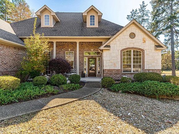 Elegant golf-course living awaits in this stunning stone-and-brick home on Balboa Golf Course in Hot Springs Village. Built in 2007, this 3-bedroom, 3-bath residence combines timeless architecture with gracious design. A lovely front porch and twin dormer windows set a welcoming tone, leading into light-filled interiors with soaring ceilings and expansive transom windows that capture sweeping fairway views. The great room’s dramatic fireplace anchors the open plan, flowing into the dining area and chef’s kitchen featuring granite counters, stainless appliances, double ovens, and a generous breakfast bar. A versatile second living area offers space for a formal dining room, office, or den. All bedrooms are generously sized; two with ensuite baths. The luxurious primary suite overlooks the course and features dual vanities, a soaking tub, and a walk-in tiled shower. Large walk in closet includes built-ins. Crown molding throughout tops off the elegant ambiance. Laundry with sink and storage plus spacious two-car garage including a separate golf cart bay with its own entrance. Large patio with fans complete the perfect indoor-outdoor living home with panoramic golf-course views.