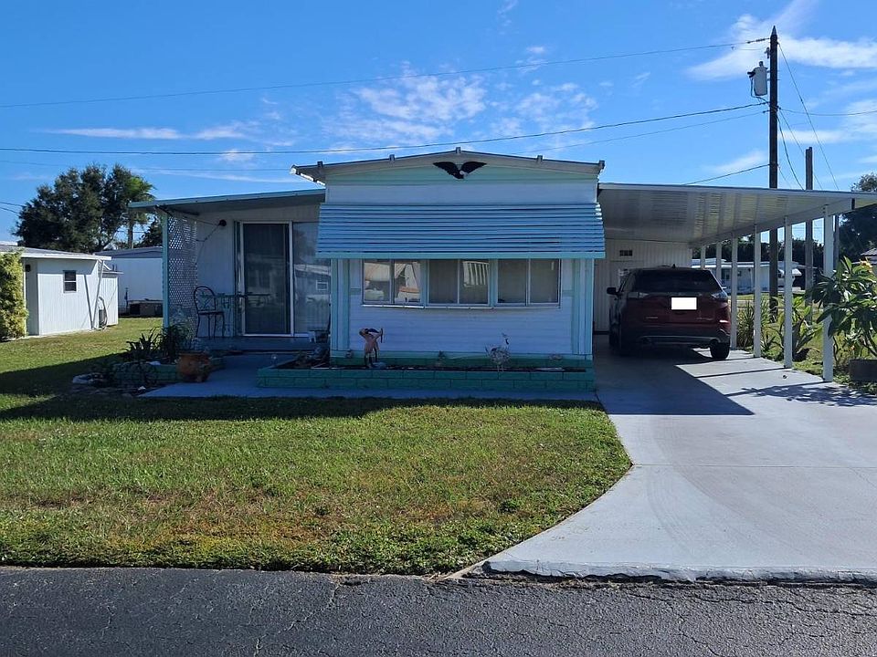 Furnished manufactured homeEnclosed porchBright florida roomTwo storage shedsSpacious drivewayCovered carportPlenty of outdoor space