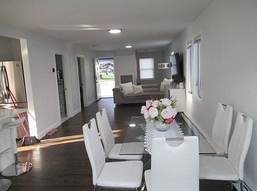 Pride of ownership shows throughout this completely renovated home with sunlit open floor plan and finished basement. Entertaining will be effortless with this open floor plan with kitchen, dining and living room and slider leading out to an ample deck. Kitchen and basement totally gutted and redone in 2021. New Navien gas never ending hot water heater, new appliances, new 200 amp electrical panel, new laundry room and bathroom in walkout basement. Guests and extended family can enjoy the privacy of the finished basement with it's own egress. Have you been wanting a yard big enough for a large pool? Well here it is and the electrical wiring has been installed and ready for pool and/ or jacuzzi installation. Fenced yard and off street parking. Close to major highways and short commute to Boston. Open house Saturday and Sunday 1-3.