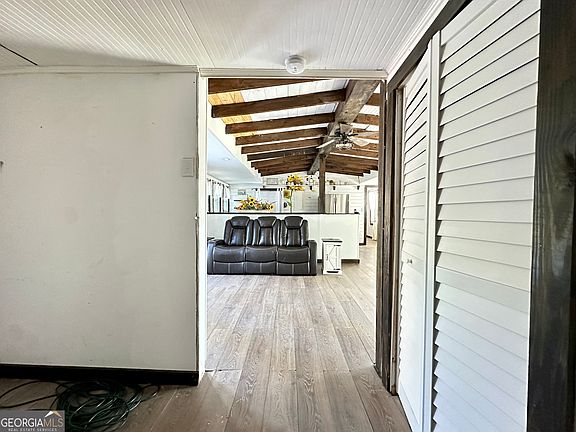 Imagine waking up to the sounds of nature with a gorgeous pond in your backyard! Natural springs feed the Pond, located 12' on the left side & 8' on the right side. The deck overlooks the pond in the rear of the home. This remodeled gem features tongue-and-groove ceilings with exposed beams, new windows, fresh insulation, a Stylish tiled shower, and a brand-new metal roof. Appliances come with the sale! There are 2 water heaters, one of which is a tank. There is also Hardie board exterior Spray foam underneath the home. Abundant with Deer & wildlife turkey. Emc fiber internet. It's the perfect peaceful retreat yet just 5 miles from shopping & doctors! Also included is a 1.5+ acres with barn dominium shell just waiting for your personal touch! Enjoy the benefits of a shared well, perfect for keeping your future garden blooming! The canvas? A spacious 24 x 60 structure, ready for you to transform indoors with your style! Bonus: An 8 x 20 porch up front, just begging for a cozy finish! Imagine morning coffees and evening sunsets here! Plumbed for 2.5 baths, kitchen & laundry. Don't miss out on this opportunity-message for more details!