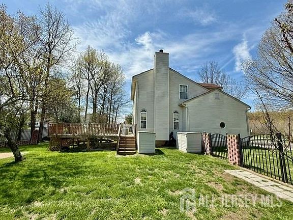 Welcome to 9 Keith Lane, a spacious home on a corner lot in sought-after Rancocas Estates! This property features a large primary bedroom with cathedral ceilings, a generous en-suite bath, and a large W-I-C. The sunken in living room boasts a cozy gas fireplace and sliders that open to a private deck, perfect for relaxing or entertaining. The large eat-in kitchen offers plenty of room for gathering, while the walk-out basement provides excellent potential for additional living space. Key upgrades include: HVAC (2016), water softener system (2017),newer roof (2018), upgraded 300 amp electric panel (2015), and new attic insulation. Enjoy year-round savings with paid-off solar panels and low electric bills. The fully fenced in backyard is enclosed with stylish black iron fencing and double gates, featuring a new paver patio, great for outdoor enjoyment. Located close to playgrounds and tennis courts. Don't miss this opportunity to own an energy-efficient home in a fantastic neighborhood!