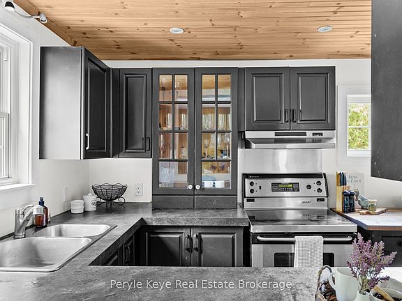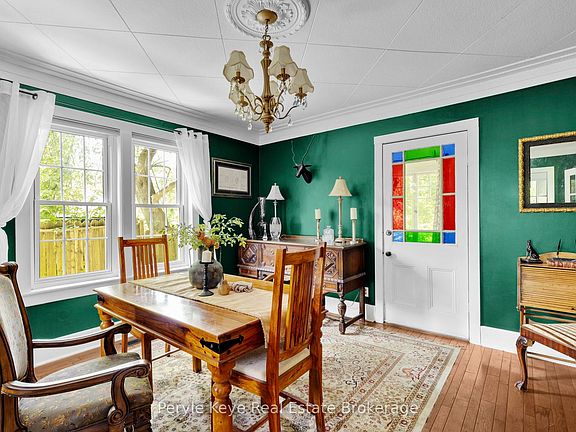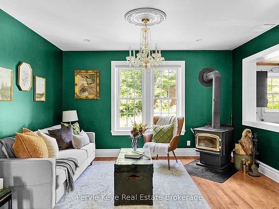 Every so often, something truly special shows up.This is one of those times. Set on a peaceful cul-de-sac, with green space and wooded trails right at your back door, 9 King Street offers a rare balance of character, privacy, and walkability. Coffee downtown in the morning. A swim in the river by afternoon. Life here keeps it all within reach. As you arrive, the brick exterior framed by a towering tree sets the tone. Step inside and the story deepens: warmth, light, and timeless character at every turn. The sleek black kitchen makes its statement with a butcher block countertop, stainless steel appliances, and soft pot lighting. A wood fireplace anchors the living room, surrounded by windows that frame the seasons. Its a place for slow reads and long talks.The dining room invites connection. Evenings begin around the table, then drift to the screened-in porch, where conversation lingers long after the plates are cleared. A Muskoka room offers another place to pause, the perfect spot to rest after tending the gardens. A 2 pc guest bath and laundry complete the main level. Upstairs, a spacious primary bedroom and a comfortable guest room offer quiet retreats. The spa-inspired 4 pc bath features a glass shower a clawfoot tub. Plus, two tucked-away nooks - right now they are closets, but with a little creativity? They could be so much more. Think an entry with a hidden bookcase door or a dormer that turns it into your next favourite room. Inside, the world slows. Outside, it opens up-private, well-treed, and spacious. Picture a bonfire glowing under the stars or afternoons spent unwinding in natures embrace. Here, fires crackle, garden beds bloom, and you feel worlds away from the pace of town. Historic charm matters everyday convenience with full municipal services, natural gas heat, and high-speed internet available. Art, nature, and community-all right here.This is where town meets quiet. Where history meets possibility. And where life-finally-feels like it fits.