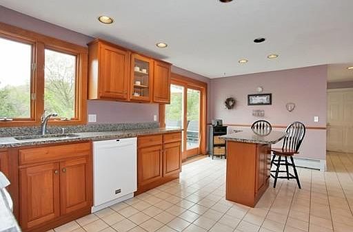 Wonderful country road setting in desirable Westborough! Welcome home to this spacious 4 bedroom cape. The island kitchen has been updated with beautiful cherry cabinets and granite counters. Slider to deck. Step down Family room with skylight. Master BR with walk in closets and full en-suite bath. Bedroom 4 features sitting area with step down to bedroom, ceiling fan, skylights and attached storage room. Convenient first floor laundry room. The finished walkout lower level features play room and game room with fireplace and newer carpet.