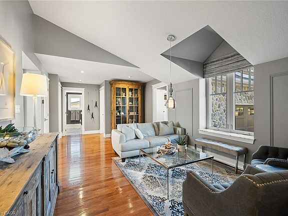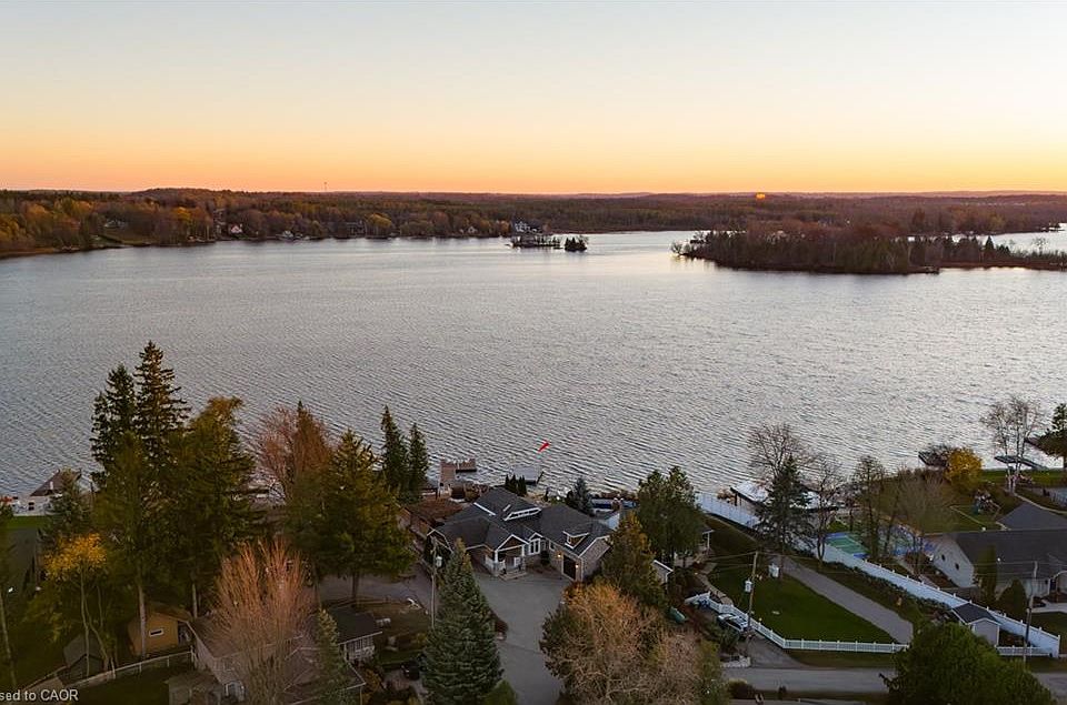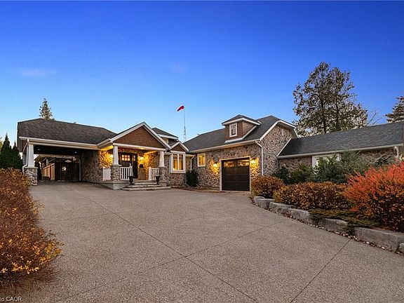 This exceptional waterfront home on Puslinch Lake offers over 70 feet of owned shoreline and a lifestyle most only dream of. Originally constructed in 1915, the residence underwent a major renovation from 2012–2013, drastically increasing its square footage and interior space. A timeless stone exterior was added, while the interior was fully reimagined with high-end finishes, modern systems, and thoughtfully designed spaces for contemporary living. Outdoor living is truly unmatched: the property’s south-facing exposure provides phenomenal sunrises and sunsets, bathing the space in natural light throughout the day. From every vantage point, you'll enjoy breathtaking water views. A built-in outdoor kitchen, pergola, hot tub, multi-tiered seating areas, fire pit, and a sit up bar with tiki lounge all combine to create the ultimate lakefront escape. The main level features a primary bedroom with a private 4-piece ensuite and dedicated laundry, alongside generous entertaining areas including an open kitchen, dining room, and family room. A separate office provides flexibility as an additional bedroom. Upstairs, a peaceful guest suite boasts stunning lake views through a massive picture window—an ideal retreat or an alternative primary suite. The finished basement adds even more functional living space, featuring a fantastic recreation area complete with a wet bar, wine cellar, and a 2-piece washroom—perfect for entertaining or unwinding after a day on the lake. The attached two-storey workshop is fully insulated and features heated floors—ideal for creative projects, hobbies, or a private studio. Topping it all off, a two-storey boathouse—newly built in 2007—includes a full accessory apartment with its own private deck. This is a one-of-a-kind property offering history, luxury, and endless lakeside enjoyment.
