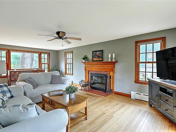 Located in Hampden Meadows, this attractive and spacious brick front colonial offers 4 bedrooms, 2 full bathrooms, a large fireplaced living room with a picture window showcasing the beautiful and large backyard, a good size dining room for entertaining, updated kitchen with stainless appliances plus a desk area, a family room and heated sunroom. There are hardwoods throughout, central air (no ac in Sunroom), a high efficiency gas heating system and a walk-up attic for extra storage. The basement is unfinished but it is heated for future expansion and you can walk right out into the back yard. Hampden Meadows School is within walking distance as well as Hundred Acre Cove. Barrington offers an outstanding school system, the Barrington Beach, Haines Park, the East Bay Bike Path and much much more.