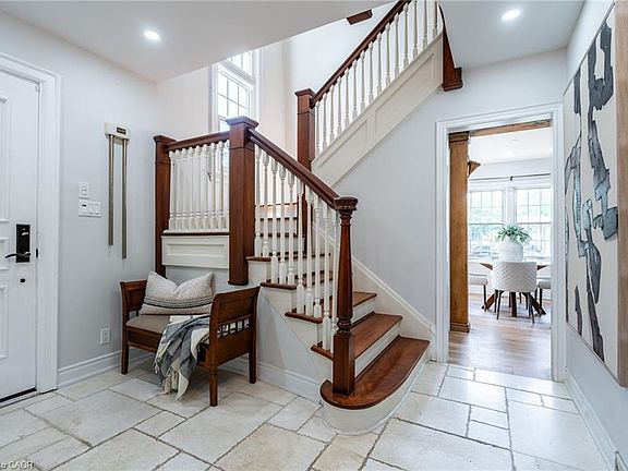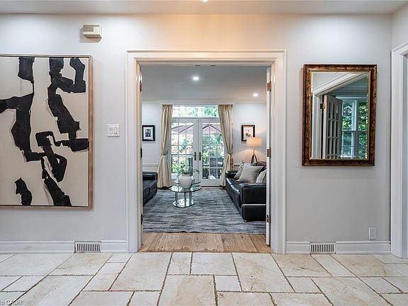 Step into timeless elegance with this beautifully renovated home nestled in the highly sought-after Historical Dickson Hill neighbourhood of West Galt community. Crafted with attention to every detail, this residence blends classic character with modern luxury. The custom-designed kitchen features a spacious center island overlooking a backyard oasis, seamlessly connected to a cozy family room and expansive dining area. Wood beams throughout the main living space pay homage to the home’s stately roots. A formal living room with fireplace opens to a charming sunroom with heated floors—perfect for enjoying views of the lush, manicured gardens year-round. Upstairs, you’ll find four generously sized bedrooms, including a luxurious primary suite with a spa-inspired 5-piece ensuite and a soothing soaker tub. The finished lower level offers flexible space for recreation or a fifth bedroom, complete with a gas fireplace for ultimate comfort. Located adjacent to the iconic Gas Light District, this home offers unbeatable walkability—just steps to Cambridge Mill, boutique shops, cafés, the Farmers Market, and scenic Riverfront trails. Don’t miss your chance to own this exceptional property where historic charm meets modern convenience.