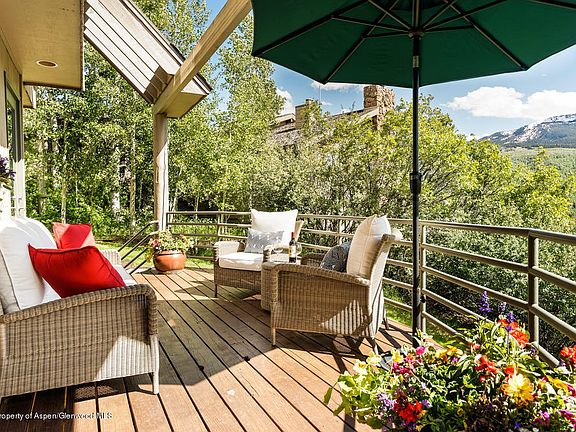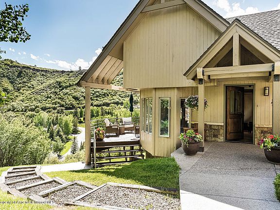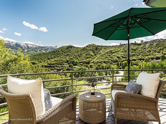 9 Lemond Circle is on a private secluded bluff with incredible views of the Snowmass ski area captured by huge windows and redwood decks. The house originally designed by CYA architects has been beautifully remodeled featuring integral plaster walls, new bathrooms with walk in showers, walnut vanities and quartz countertops. A dream kitchen that includes Wolf/Sub-Zero/Asko appliances, cherry wood cabinets, granite counter tops and slate flooring. The living area has a towering dry stack fireplace that compliments the 20 Ft. vaulted ceiling and hardwood flooring; a second fireplace warms the contemporary den/office, and a fun media/play area adjoins the lower level bedrooms.