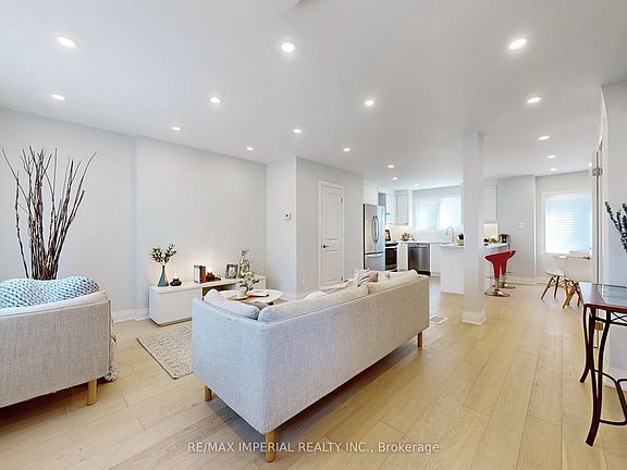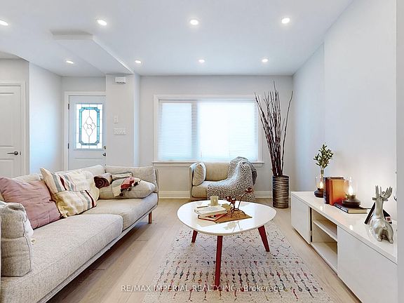 Welcome to this beautifully renovated semi-detached home in vibrant Danforth Village-East York! Thoughtfully redesigned, the open-concept living area flows seamlessly into a modern kitchen with stainless steel appliances, quartz countertops, and tranquil backyard views. The spacious breakfast/dining area is perfect for meals and entertaining. Bathed in light from new windows and potlights, this home features a new roof, durable flooring, an elegant glass staircase, and thermal front and side doors. Three fully renovated bedrooms include a primary suite with a luxurious 4-piece ensuite. The finished basement, with a separate entrance, offers a recreation room, den, and an additional 4-piece bathroom, ideal for extended family or guests. Exterior upgrades include new interlocking pavement (potentially eligible for a parking permit) and a large backyard perfect for gatherings, a potential tandem garage, or a garden suite for in-laws or rental income. Equipped with a newer furnace and tankless water heater rough-in, this home blends modern comfort with timeless appeal. The detached garage has been removed, maximizing backyard space for your vision, while retaining a designated parking spot for the owner.