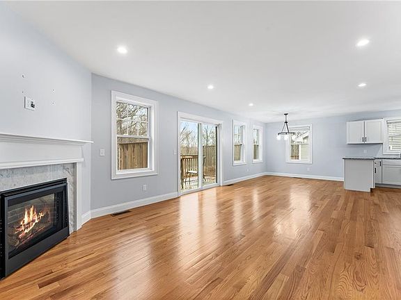 Welcome to 9 Lily Ln in West Warwick—a beautifully designed 3-bedroom, 3.5-bath home offering spacious, open-concept living with beautiful hardwood floors! The modern kitchen features granite countertops, shaker-style cabinets, a large island, and a dining area perfect for entertaining. The living room boasts a cozy gas fireplace and sliders that open to a private deck—ideal for relaxing or outdoor dining. The main level also includes a convenient half bath and a spacious primary suite complete with an ensuite bath with double vanities and walk-in closet. Upstairs, you’ll find two generously sized bedrooms and a shared full bath. The finished lower level offers even more living space with a full bath and walk-out access to a patio, providing great flexibility for a guest suite, home office, or playroom. A 1-car attached garage adds extra convenience. Located close to shopping, highways, and schools—this home combines comfort, style, and a great location. Don’t miss out! *Some photos have been virtually staged.