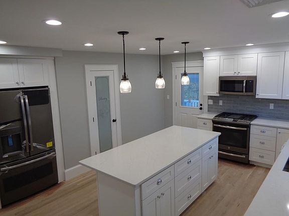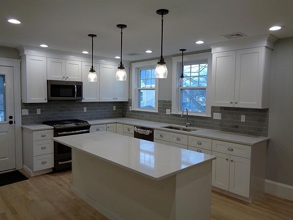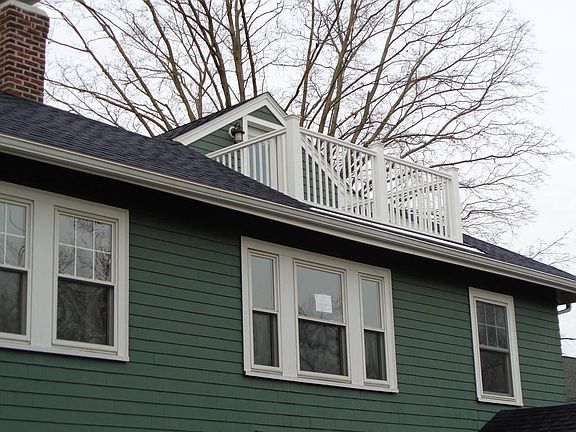 Totally Renovated 7 room 3 bedroom 2 full bath two level top flor apartment located off of Mount Auburn Street steps to transportation in the sought after East End of Watertown. Spacious Sunny Living room with fireplace. Formal dining room, sunroom perfect for home office. Two large bedrooms on second floor with custom closets. Top floor master suite with walk-in shower with access to private roof deck. Amazing kitchen with large center island, quarts counters & full appliance package with washer & dryer included in unit. New tiled bathrooms, new windows, roof, electric wiring. Cable ready. New central/Air. Hardwood floors throughout. Private back porch off of kitchen. Garage parking for 1 car with additional parking available.