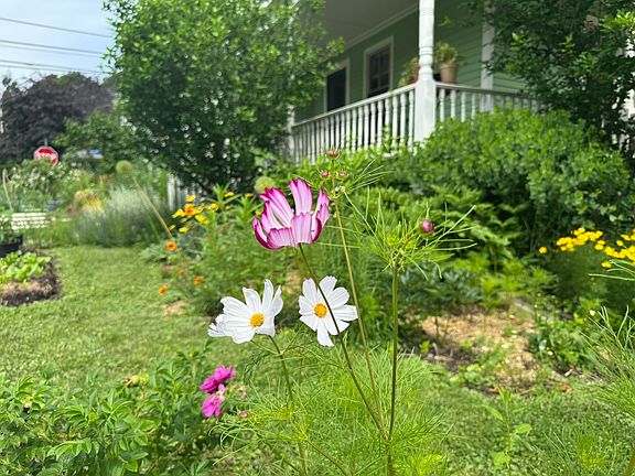 Backyard flagstone patioFirst-floor laundryNatural maine perennial gardensBeautiful wood floors
