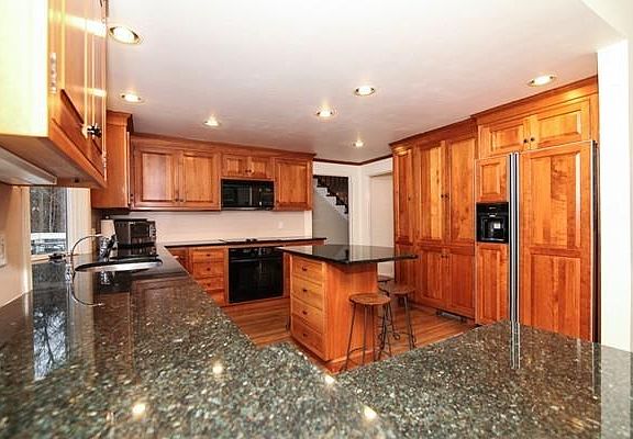 Charming gambrel serenely situated on a large wooded lot with gently sloping rear lawn and expansive rear deck. Updated kitchen with granite counter tops, adjacent to family room with brick fireplace and hearth, flows beautifully through doors that open to rear deck. Large front to back living room with fireplace also opens to deck at rear. New roof, freshly painted interior and exterior. This well maintained property also features a First and Second floor master. Large two car attached garage and lots of off street parking.