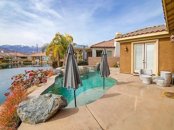 The backyard views of the lake with pool and spa are truly a spectacular site to see. This property offers the amenities of desert living with gorgeous island and mountain views.