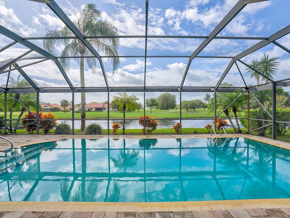 Enjoy the PGA lifestyle and spectacular sunsets overlooking the lake and golf course with this lovely 3/3.5 Pool home with southern exposure! This home features a split floor plan, vaulted ceilings, large open living areas, screened patio & pool, wood burning fireplace, low HOA fees, Water Heater 2021. AC '21 & '18. Pool resurfaced 2019. The roof has 5 years of useful life. Quotes available in Documents Section Roof ($65k) & Impact windows & doors ($67k). PGA offers Optional Golf and/or Tennis memberships. Championship Golf with Five renowned courses, and the infamous Bear Trap. The newly renovated Member's Club features two new Andy Staples designed courses.Enjoy the PGA Resort and Spa's exceptional amenities, poolside dining, luxurious spa facilities and delicious restaurants courts and croquet courts, indoor racquetball courts and fitness facilities. Also 800 acres of lush greenspace with trails for jogging & biking and playgrounds for the kids.