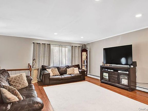 This spacious raised ranch with beautiful lake views features 3 bedrooms, 2.5 bathrooms and a fully finished and nicely updated lower level. The eye catching, fully renovated, eat-in kitchen has all stainless steal appliances, granite countertops, custom cabinetry and a convenient island. There's also a large living room, dining room and a master bedroom, complete with master bath. You'll be impressed with the lower level of the home, which has a large family room with fireplace/wood burning stove, additional space which can be utilized for an office or storage, a laundry area, walks out to backyard and provides access to the 2 car garage. The home also features a beautiful large deck, with plenty of space to entertain guests, it's own above ground heated pool, hardwood flooring throughout, custom tiled bathrooms, as well as new light fixtures/recessed lighting. Close to shops, schools, restaurants, highway and Metro North Railroad. Great for commuting.Taxes do not reflect STAR Credit.