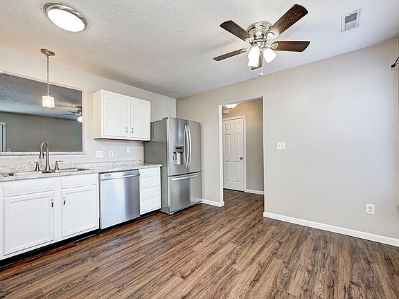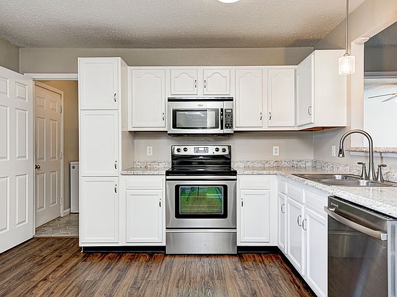 Well maintained 3 Bedroom, 2 Full Bath ranch home features a large great room with door leading to back patio. Eat-in kitchen with ample counter and cabinet space. Split floor plan, Primary bedroom has walk-in closet and private bath. Two other bedrooms are more spacious than most. Solid surface flooring throughout. HVAC 2019 (aprox). Roof 2022. All appliances remain. All information deemed reliable but not guaranteed.