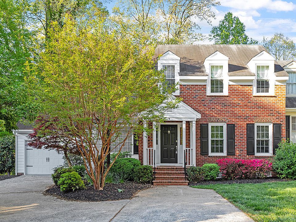Carefree living can be yours in this beautiful Surrey Green Townhome. So much to love about this private community nestled into a enclave of lovely homes, serene ponds and beautiful fauna. Spacious great room with real wood-burning fireplace that overlooks a tranquil brick paver patio. Retractable awning offers shade in the warmer months. Incredible lot insures ample space for your own garden. Owner's Suite is situated on the main level and upstairs bedrooms offer a quaint cottage feel. Kitchen features granite counters and stainless appliances. Rare one car garage with additional private parking out front. Surrey Green is conveniently located in the heart of SW Durham adjacent to Hope Valley. Easy access to Southpoint Mall, I 40 and Duke. Just a short drive into downtown Durham or Chapel Hill!