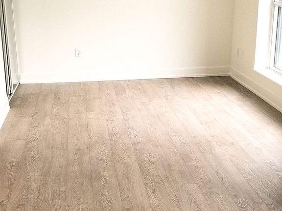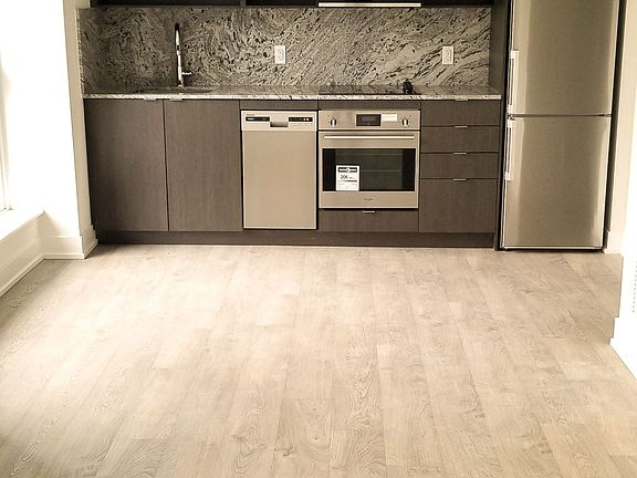 Floor-to-ceiling windowsWide-plank flooringSleek kitchenIntegrated stainless steel appliancesQuartz countertopsContemporary cabinetryIn-suite laundry
