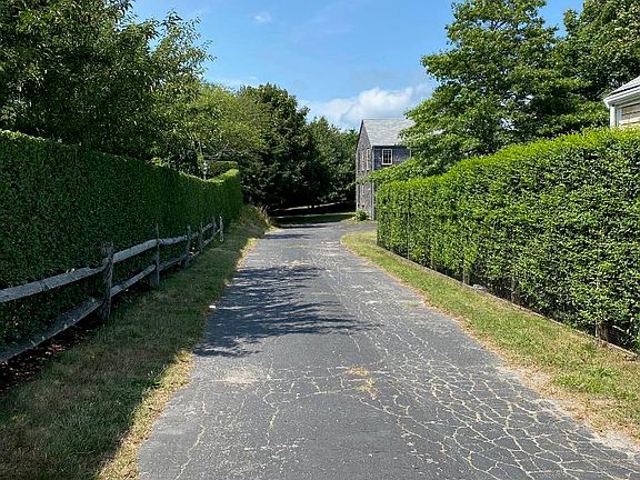 9 Madaket Road is located down a long driveway away from the main road to provide peace and privacy. The property is surrounded by large, mature trees and a spacious backyard. There are two first floor bedrooms, one with a walk in closet; large living room with a wood stove and cathedral ceiling as well as an attached two car garage. The over sized lot is 23,448 sf and can accommodate a new main house, guest house and pool. There is also possible subdivision potential. This is an ideal location close to town, the bike path, The Westmoor Club and Sanford Farm!