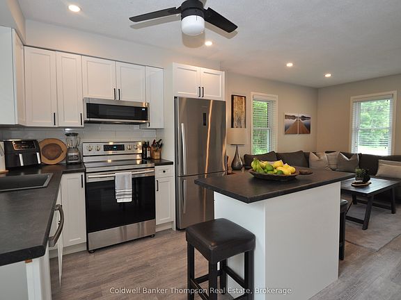 Location Location Location! This amazing in-town bungalow features an absolutely gorgeous back yard boasting towering trees for amazing privacy all year round. Walk to town to enjoy restaurants, shopping, the Theatre, parks or water activities on the Muskoka River. Welcome to peaceful Maple Ave where this 1 bedroom plus den, 1 full bath has undergone extensive reno's & upgrades since 2021 including a new kitchen with SS appliances & island, new 3-piece bathroom, new flooring, new F/A gas furnace, hydro panel, weeping tiles, sump pump with battery back-up, new PEX plumbing & pot lights throughout. The fully finished lower level features a cozy family room/office area, den (used as a 2nd bedroom) plus a separate laundry/utility space with storage. New deck replaced in 2025, new shingles 2025. Beautiful stone landscaping at front & rear entrances. Plenty of parking in the double wide driveway, filled with stone & ready for paving. Municipal water & sewer, hi-speed internet, garden shed + so much more! Incredible potential to expand which is rare to find with an in-town lot. Build a garage or home addition ~ endless possibilities here. Come discover this turn-key property with nothing to do but relax & enjoy.