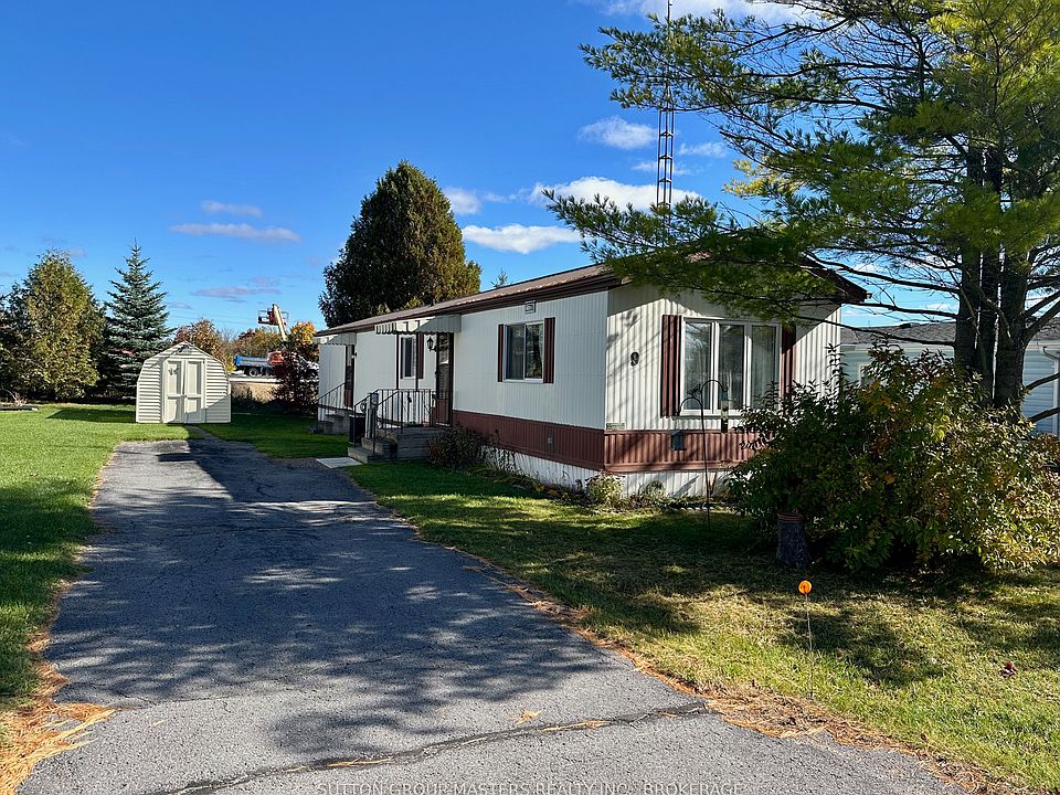 The perfect solution to affordable downsizing! The Richmond Park community is close to Napanee amenities, backs onto the future seniors home, yet set in a country setting on a quiet road perfect for walking. A covered entrance way from the paved drive with lots of parking leads to the open concept eat in kitchen with lots of cupboards and counter space. The hallway leads to a 4-piece bath and two bedrooms, houses convenient laundry set up, and to a second exterior door to the shed and small manageable yard. This pet friendly, well established and well-maintained park offers a quiet lifestyle in a neighbourly environment. This home has been well loved for some time and ready for someone looking for the most affordable comfortable living space possible! You aren't paying more for fancy extras here, but it has what you need and it's ready for your own touches to make it your own. The spacious master offers 2 large closets, and the bright second bedroom for a spare or hobbies. The electric furnace, central air, newer metal roof, and good windows ensure a warm, dry comfortable living space. Close to Napanee this popular Richmond Park is expanding with new mobile homes for sale, and promises shared community hall for activities, and a swimming pool for the homeowners and their guests. This could be the answer to your downsizing dilemma!