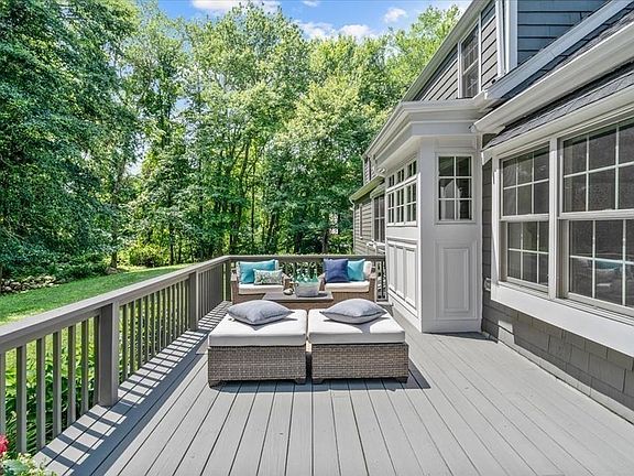 Fantastic price adjustment for this gorgeous custom cape. Beautifully appointed and updated with designer finishes throughout. This stunning home boasts an overall open floor plan with a welcoming, relaxed and efficient flow for most any family. Impeccably maintained and extensively renovated during present ownership, with new exterior and interior paint, new roof, new windows, custom built-ins, custom granite kitchen with stainless appliances, remodeled baths, and has been professionally and exquisitely landscaped. The large light filled mudroom /sunroom has a slate floor, custom boxed out triple windows, custom lockers and access to entertainment size deck overlooking beautiful private grounds. First floor features two bedrooms (easily home office) fire-placed living room, spectacular kitchen open to dining room. Second floor boasts a front to back master BR and a large 4th bedroom. Separate large walk in storage room. Commuter friendly easy access to train and highway. A must see