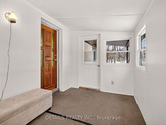 Welcome to 9 Maplewood Avenue! Enjoy Affordable living in the peaceful community of Lakewood Estates. Filled with natural light, this sun filled 2 bedroom mobile on leased land is ideally situated at the edge of Carleton Place. Close to Hwy 7 and all Carleton Place has to offer. Easy Access to amenities, dining, shopping, healthcare and essential services. An inviting open concept kitchen, living room, dining room offers great space to gather. Spacious living room with large windows. Living Room picture virtually staged to show you how inviting and warm the space is. Primary bedroom has a wall of closets. The secondary bedroom was originally 2 bedrooms, could be converted back. Freshly painted and ready for you to call home. Featuring a heated sunroom is perfect for relaxing with your morning coffee. Great space for a mudroom. Covered front deck. Handy door to outside off of the laundry area. Convenient workshop/shed is included for extra storage. Driveway parking space for two vehicles. Located across from a picturesque tree-lined area, this home provides a sense of privacy and tranquility. 48 hours irrevocable on all offers. Park fees includes Land Lease, realty taxes, garbage removal, snow removal of common roads/streets, water, sewer, water testing