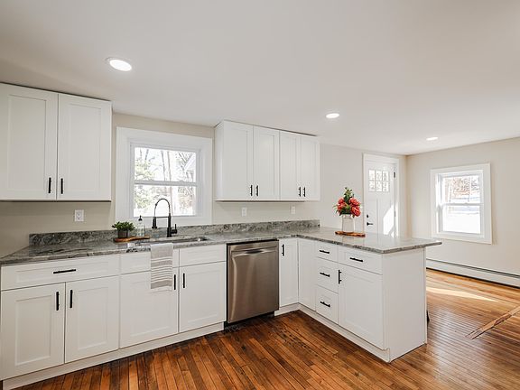 Lovely Ranch Style Home that has been updated from top to bottom!! The bright and airy kitchen welcomes you with all new shaker style cabinets, granite counter tops and SS appliances. Charming refinished hardwood floors flow throughout the main living areas and bedrooms. Cozy wood fireplace in the living room adds a wonderful ambiance and additional heat source. Brand new boiler and hot water system are checked off the list as well as all new windows-perfect timing for these colder winter months. Full bathroom offers new ceramic tub wrap, modern tile and vanity with LVT flooring. Washer & dryer hookups are also located on the main level making laundry a breeze. The covered porch is the perfect spot to relax and sip coffee with a good book while enjoying some fresh air. Perfectly situated across from Pleasant Pond along with outside storage shed for winter activities or garden fun! Seller is a licensed NH real estate agent.