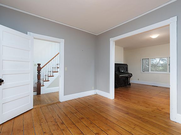 Incredibly well-built, straight-as-a-rod, 1800 square-foot Colonial on a large, dividable lot, in beautiful Bath, Maine! Large kitchen and 3 large common area rooms with a wood burning stove on the first floor. The second floor features four large, light-filled bedrooms and a full bathroom. Replacement windows throughout fill the home with natural light and passive solar gain, including in the partially finished attic space, which could easily convert to an office, en-suite bedroom, yoga studio, you name it! The home sits on granite ledge, and is rock solid all the way up. A vapor barrier is installed in the basement, over ledge and dirt floor, to mitigate against radon and moisture. High efficiency heat-pump water heater. A dehumidifier with dedicated sump pump keeps the basement pleasant and usable. Laundry hook-ups are present in basement, but seller has preferred to keep laundry in the kitchen. A partially finished porch just off the kitchen and common room could easily become a laundry/bathroom. The entrance hallway doubles as a mudroom. The grounds used to be on the Bath City Garden Tour and only need pruning to be restored to their glory. But raspberry, heirloom apples, and many other delights cover the .35 acre property. Just a short walk to the Maine Maritime Museum and public boat launch. A network of hiking trails is just a 1/4 mile away. Public field and free ice skating rink across the street. Five minutes from downtown Bath, within 20 minutes of multiple Maine beaches, 40 minutes from Portland, 12 minutes from Brunswick. Enjoy seasonal water views from your large, in-town lot on a ridge with park-like sloping terraced grounds waiting to be utilized. Well insulated, with energy smart systems, this home is efficient AND spacious, in a walkable neighborhood. Full of possibilities!