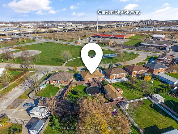 Explore this charming bungalow nestled right beside Douglas Park, where tranquillity meets convenience. Imagine waking up to views of lush green space, with playground equipment steps away for family fun, and effortless access to the QEW for quick commutes. The pie-shaped backyard is truly a showstopper! Enjoy summer afternoons on the spacious deck, cool off in the above-ground pool, or explore your passion in the massive outbuilding (over 400 square feet) perfect for gardeners, hobbyists, or anyone needing a workshop. Surrounding it all are lovingly maintained perennial gardens and even grapevines, creating a private retreat that feels like your own slice of paradise. Step inside the unique foyer then into a bright living room with a big bay window overlooking the park. Hardwood floors add warmth, while the large kitchen with dining space and patio sliders makes entertaining a breeze. BBQ lovers will adore the seamless flow to the rear deck. The main floor features charming built-in storage and cupboards that maximize space with style. The finished basement offers even more living space with an additional bedroom, cedar closet, and full bathroom. A cozy recreation room with a brick-mantled wood-burning fireplace sets the stage for family gatherings, while the bonus office nook provides a quiet spot to work or study. Updates include: Furnace 2017, AC 2018, Roof 2016, Pool Pump 2016, 100 AMP on breakers. Ready to feel right at home? Come check out this property ASAP.