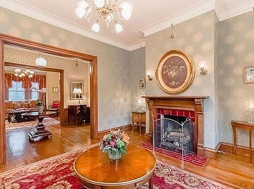 This stunning Victorian sits high on a hill overlooking the coveted Rangeley Park neighborhood. Nationally recognized as one of the countrys most exclusive areas, home to history and beauty, this home has been extensively renovated to meld todays lifestyle with the grace and detail found in classic Victorian homes. A large open gourmet kitchen leads into a cozy family room with gas fireplace. Traditional twin parlors highlight the front of the house with large windows that create a light-filled home while the formal dining room offers twin built-ins. Exquisite original woodwork and floors meld perfectly with the carefully selected period custom wallpaper and original lighting fixtures. Six bedrooms, stunning baths, lots of closet space, a recreation room, home gym, new two-car garage and front and back driveways highlight this home. Offering privacy and space in a bucolic setting, within walking distance to the town center, trains and schools. A rare offering!