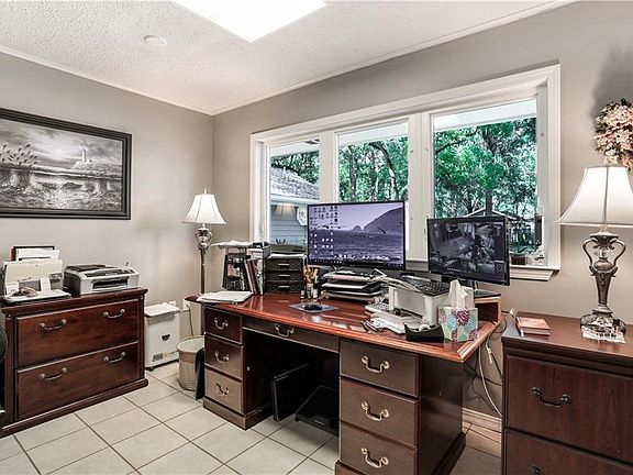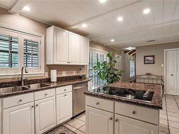 Wonderful brick ranch on beautiful oversized lot with 24 x 36 insulated garage/workshop. Front door leads to gorgeous wood beamed dining area/ living area. Kitchen has stainless appliances, shiplap ceiling, & granite counters. Living area is spacious w/ relaxing side patio w/ wood ceiling. Add'l office/ craft/playroom overlooks serene fenced backyard. Primary bedroom has remodeled bath & sliding doors to backyard. 2nd bedroom has ensuite & 3rd bedroom is huge- possible 4th bedroom. New roof & flood zone C.