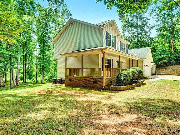 **SELLER CREDIT: Up to $7500 with an acceptable offer!** This four-bedroom, 2.5-bath home is situated on a nearly acre wooded lot that backs up to the picturesque Clear Creek. The property offers maximum privacy as it sits behind neighboring properties. The park-like backyard provides ample space for various activities such as play, entertaining, and exploration. Don't worry about parking; there is plenty of space for that. The house has a 2-car attached garage, an oversized parking pad, a 2-car carport, AND a storage building (both with electric). The wrap-around front porch is ideal for enjoying morning coffee or relaxing after a bustling day. The first floor features maple hardwood floors and is perfect for entertaining. The kitchen has granite countertops, stainless steel appliances, and abundant cabinet space. The breakfast room boasts bay windows with a view of the beautiful backyard. The kitchen flows into the living room, which includes a gas-log fireplace for chilly nights. Additionally, there is a dining room adjacent to the kitchen and a half bath for guests. Moving to the second floor, you'll find beautiful black walnut and pecan hardwood floors. The spacious primary bedroom includes an ensuite bathroom with a jacuzzi bathtub and a separate shower. There is also a second full bathroom in the hallway and three additional bedrooms with generous closet space. Rosewood Meadow is a NO HOA community located just 1 mile from Lake Robinson, 10 minutes from downtown Greer, and 25 minutes from downtown Greenville. There is convenient access to Hwy 14 and Wade Hampton Blvd. It's country living, but still close to everything!