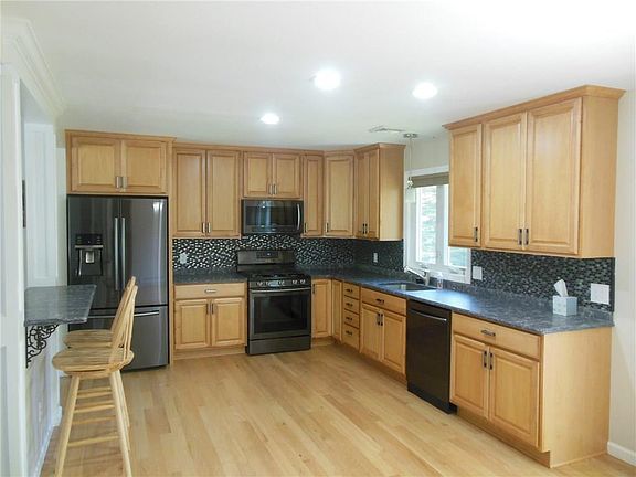 Ranch Home on a beautiful .63 acre fenced in yard. Very tastefully remodeled to today's standards. Custom kitchen design with beautiful accented granite counters and tile back splash. Center built in high top with same accents and for 3 stools. High end new appliance. Hardwood floors throughout. ----- Living room has a brick fireplace with an enamel gas insert. ------ Total 3 Bedrooms and One full remodeled bath as well. Sunshine lights up the rooms in the morning and the afternoon. NEW high on demand tankless gas heating system, NEW Central air, NEW 200 amp electrical service, NEW vinyl siding, Vinyl clad windows, garage doors and electric openers. City Gas and City Water. Generator ready. Play or garden in the back yard with raised beds and storage is available in the lighted out building. Walk out Lower level for additional future finishing. ------ Walking distance to Downtown Westerly, Train Station, Wilcox Park and YMCA. Short Drive to Westerly Beaches.