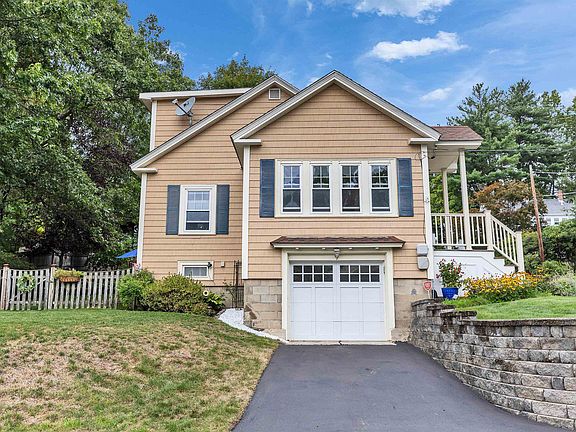 Welcome to 9 Monadnock Street, a charming 1960s Cape in the desirable North End of Nashua. Set on a quiet dead-end street that borders 125-acre Greeley Park, this home offers trail access, walkability to downtown restaurants, shops, and Holman Stadium, plus easy access to Route 3, just 45 minutes to Boston. Inside, classic character meets modern updates with hardwood floors, original glass knobs, built-ins, and a wood-burning fireplace. The renovated kitchen features an open layout, massive eight-foot island, stainless appliances, reclaimed wood shelving, and shiplap walls. While the dining area and sunroom with sunset views create inviting spaces to gather. Upstairs are three bedrooms and a full bath, including a spacious primary with dormer ceilings, dual closets, and a window seat with storage. The basement provides extra storage, workshop potential, and garage access. Excellent features include a Buderus boiler, vinyl windows, newer roof, and an irrigation system. Enjoy outdoor living on the private composite deck, large patio, and landscaped yard. Two driveways add convenience. Lovingly cared for, this move-in ready home blends location, updates, and timeless charm in one of the most sought-after neighborhoods in Nashua.