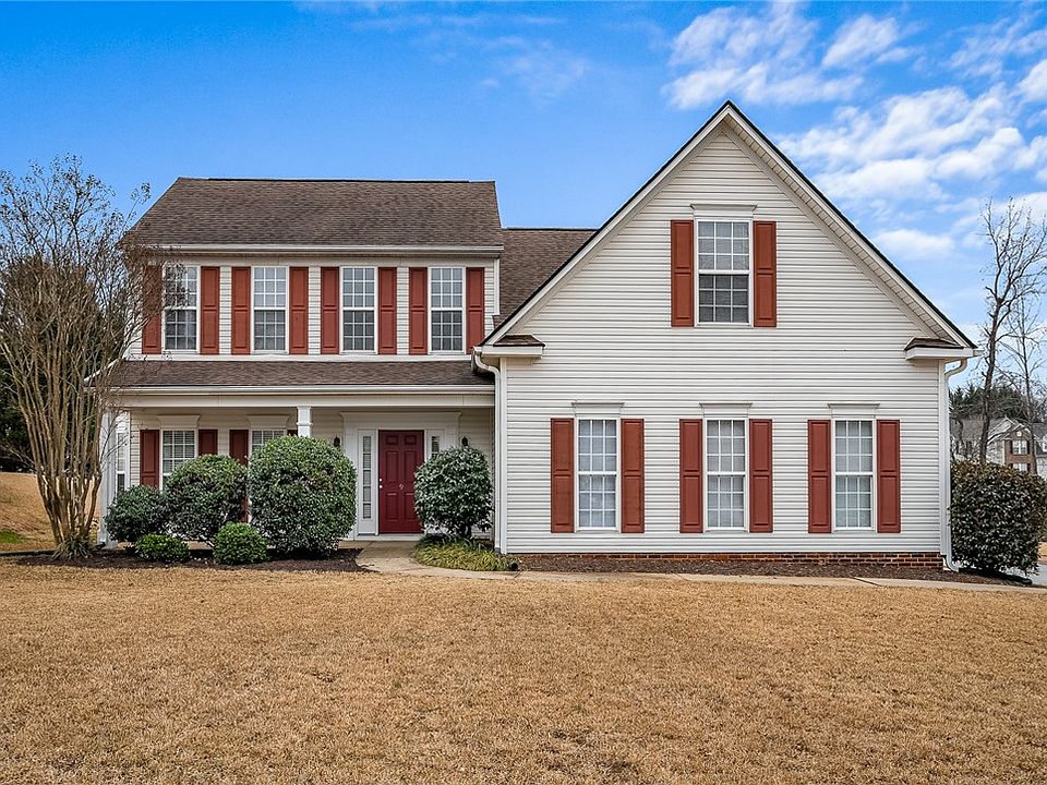 The grass IS GREENER at 9 Montpelier! Recently updated, moving into this home is EASY. Luxury vinyl plank floors run through the main gathering spaces of the home. The formal dining room is spacious and located at the front of the home, allowing for quiet meals while the breakfast nook is an extension of the kitchen for more casual eating. The kitchen features granite countertops, stainless steel appliances and bar seating. Overlooking the living room, you'll appreciate how open the home feels - with vaulted ceilings and a catwalk on the upper level, the heart of the home feels bright and light! The Primary Bedroom is located on the first floor and has a walk-in closet and private en suite with walk-in shower and soaking tub. There's also a half bathroom for guests on the main level. The upper level features two large bedrooms, a finished room over the garage (that could serve as a 4th bedroom), a full bathroom and a lofted space that could be ideal for a workspace, reading nook or any cozy "nook" space you might imagine! The laundry room also offers a new washing machine (with a transferable warranty) and a dryer. The corner lot gives you extra green space to enjoy, and it's a short distance from the community play area and pool!