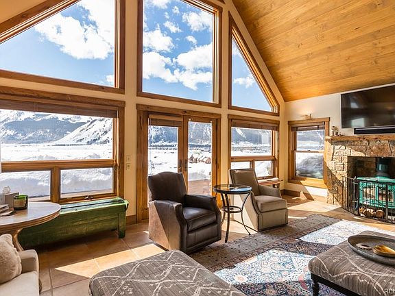 The Moon Ridge area is a premium 9 residence subdivision with a very private and peaceful location between down own Crested Butte and the Mount Crested Butte ski resort. The area possesses the most expansive, unobstructed views of the surrounding mountains and valley, while being so close to town that you can walk and/or bike to downtown along a paved path. This particular 2.55 acre home-site overlooks a peaceful pond with lots of wildlife, natural grass meadows and wildflowers. The vaulted ceiling and wall of windows in the Great Room allows in the natural light and invites you to take in the natural scenery that surrounds the property. The kitchen has custom chestnut cabinetry, newer appliances, dining island and a large dining area with large pictures windows. The second-floor offers two guest bedrooms with private bathrooms and a large open loft. Above the garage, is a private bedroom suite with a fully equipped kitchen, bath and separate entrance.