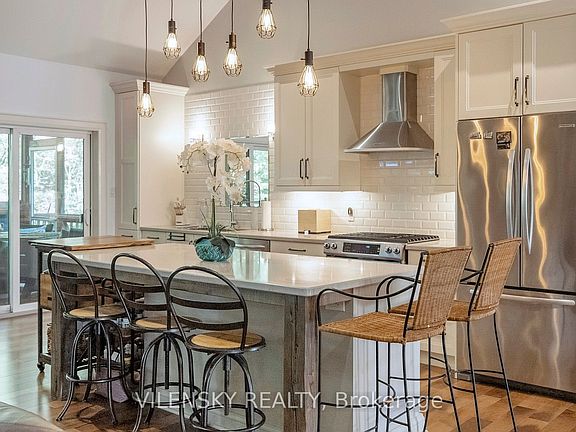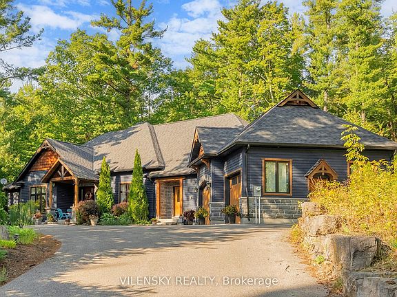 For nature lovers alike, this beautiful home is a definite dream come true 4492sq ft. Situated in a highly sought-after estate community rare to come to market, this is more than just a home, it is a lifestyle. Step inside and you will be welcomed by gorgeous forest views and a practical layout that can accommodate a multitude of needs. The main floor boasts three generous bedrooms spread across two separate wings, including a stunning primary suite with expansive views onto the deck and forest out back. Have your morning coffee or practice yoga while being immersed in nature. Enjoy the added bonus of a bonus room also found on the main level, which can be used as an office, library, nursery, or additional sleeping accommodation. With a vaulted ceiling in the main living area, a stunning ceiling-height wood-clad gas fireplace, and reclaimed century-old wood beams, this space exudes both character and history. Cook up a storm in your gourmet kitchen and choose between dining in your elegantly appointed dining room or in the fully screened-in Muskoka room with vaulted ceiling and plenty of room for barbeques and gatherings. Behind the house, you will find "escape to the country" style gravel landscaping where you can grow your garden, pick wild raspberries and blackberries right from your own backyard, or just relax and enjoy the nature that surrounds you. This home also features a generously sized fully finished walk-out basement perfect for all your entertaining needs, including a large guest suite and another full bath, home gym with infrared sauna, and outside access where you can roast marshmallows, or simply enjoy the outdoors as you please. And don't forget the bonus of having so much storage space! If you are looking for a bespoke home with tranquility, generous accommodations, and modern amenities all rolled into one, this house is MUST SEE.