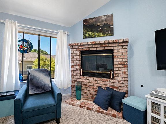 Absolutely adorable French Country inspired 1,286 square foot, 2 bedroom, 2 bathroom townhome in the highly desirable Scottsborough community. This end unit is cheerful and bright with soaring vaulted ceilings, updated bathrooms, cozy fireplace and dual pane windows. Located on a sweet cul de sac and featuring a 1 car garage with a storage loft for all of your hobbies and toys. Boasting a private back yard for spring gardening and summertime barbecues. Low HOA dues cover exterior siding, paint and roof for each home. This lovely community has lush landscaping, mature trees, well maintained roads and a common pool, spa and clubhouse. Located in the heart of Scotts Valley walking distance to shopping, award-winning SV schools and Hocus Pocus Park. Henry Cowell Park is just a hop skip and a jump away for hiking and biking or jump in the car and you're at the beach in 10 minutes! You're going to love this sweet home.