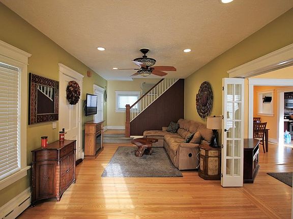 Stately two story colonial! Remodeled kitchen w Silestone countertops & s s appliances, remodeled full bath, hardwood floors on both levels, replaced windows, formal dining room with custom built-ins, enclosed porch, full walkout basement, cast iron baseboard hot water heat. One year home warranty to buyer at closing! Spacious double lot: 80 x 140 irregular. 2 car wide cement driveway, 2 car detached garage w 20 amps. Large expansive patio, and fantastic lot size!!