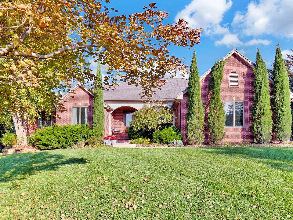 Tucked away at the end of a quiet cul-de-sac in sought-after Shadybrook, this picturesque brick home sits on a private 0.76-acre lot backing to a beautiful tree line. The setting alone makes it special, but the outdoor living spaces truly make it shine—an in-ground pool with automatic cover, pool house, and lush landscaping framed by mature trees create a backyard oasis ideal for entertaining or relaxing in peace. Inside, the home offers over 2,900 square feet on the main level with an open-concept layout filled with natural light. Large windows showcase the backyard view and flood the living areas with sunshine. Hardwood floors, crisp paint, and enamel trim lend a timeless feel throughout. Two spacious living areas on the main level provide flexibility, while a gas fireplace and a stylish wet bar connecting to the family room make this home perfect for gatherings. The kitchen features updated flooring (2020) and flows easily into the main living areas, while the formal dining room adds an elegant touch for special occasions. The bathrooms were tastefully updated in 2025, blending fresh finishes with classic design. Major updates add peace of mind and long-term value, including a DaVinci tile roof (2018), new south facing windows (2025), new HVAC (2025), new pool liner, pump, and heater (2025), and new deck flooring and stairs (2025). The lower level presents an excellent opportunity to finish the space to your own style and needs, whether that’s additional bedrooms, a rec room, or a home gym. Located in the Andover School District with lower Sedgwick County taxes, this property combines the best of both worlds: quiet suburban living and convenient access to major highways, shopping, and dining. Don't miss this rare opportunity to own a beautifully maintained home with a resort-like setting in one of the area’s most desirable neighborhoods.