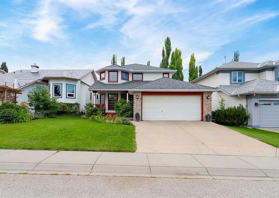Welcome to Your New Home in Valley Ridge! Nestled in the heart of Valley Ridge, this beautifully maintained two-storey family home is just steps from parks, an outdoor rink, soccer fields, a golf course, and scenic walking paths that weave through the community. The thoughtfully designed kitchen features quartz countertops, a stylish tile backsplash, a central island, corner pantry, and a cozy breakfast nook—perfect for morning coffee or casual meals. This space flows seamlessly into the inviting family room, complete with a warm gas fireplace. The main floor also offers a formal dining room, convenient half bath, laundry area, and a versatile den with custom built-in cabinetry. Step outside to the south-facing tiered deck and take in breathtaking views of the west hills, overlooking a fully fenced and meticulously landscaped backyard. Upstairs, the spacious primary suite boasts a luxurious 5-piece ensuite with a jetted tub and separate shower. Two additional large bedrooms and a full 4-piece bathroom complete the upper level. Additional highlights include: Slate flooring, double attached garage, covered front porch, high-efficiency furnace, unfinished basement ready for your personal touch. With quick access to both the mountains and downtown via Stoney Trail, Valley Ridge offers the perfect blend of nature and convenience. Enjoy nearby amenities and endless outdoor opportunities right at your doorstep. Don’t miss your chance to own this exceptional property in one of Calgary’s most sought-after communities!