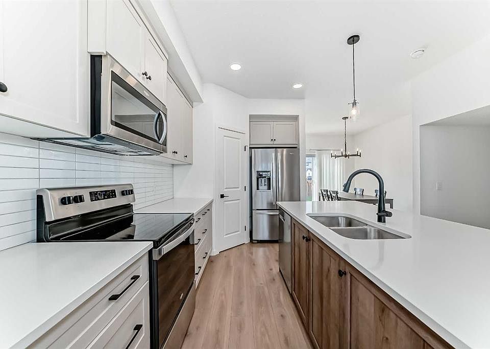 Welcome to this modern and spacious 3-bedroom, 2.5-bath townhome built by Calbridge Homes in 2023! Perfectly located next to a park and playground, this corner unit with NO CONDO FEES offers an extra-large yard and a convenient side entrance to the unfinished basement—with potential for a future legal suite (subject to city approval). Inside, you’ll find an inviting open-concept main floor featuring a bright living area, stylish kitchen, and dining space that’s ideal for both everyday living and entertaining. Upstairs, the primary suite boasts a walk-in closet and private ensuite, while two additional bedrooms and a full bath provide plenty of space for family or guests. Enjoy the lifestyle benefits of this prime Sage Hill location—just steps from the park and minutes from Sage Hill Plaza, with grocery stores, restaurants, and every amenity you need close at hand. With its modern design, family-friendly layout, and unbeatable location, this home delivers exceptional value and flexibility for today’s buyer.