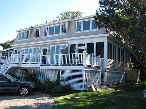 Winter Rental. Walk out the door of this newly remodeled beach townhouse, cross over the footbridge and voila you are on Good Harbor Beach, one of Gloucester's finest beaches. Views abound from almost every room. From the ample deck and screened porch, walk up a short flight of stairs to a spacious living room with comfy furnishings and then over to a thoughtfully designed kitchen with lots of cabinets. All meals become gourmet with the Atlantic Ocean just outside your window! The master bedroom, with king bed has a full bath with shower. The second bedroom with queen bed has an ensuite bath with small tub and a shower and the third bedroom on the leeward side contains twin beds and a door to a small deck. Just outside this room is a 1/2 bath with laundry. Rent does not include utilities.
