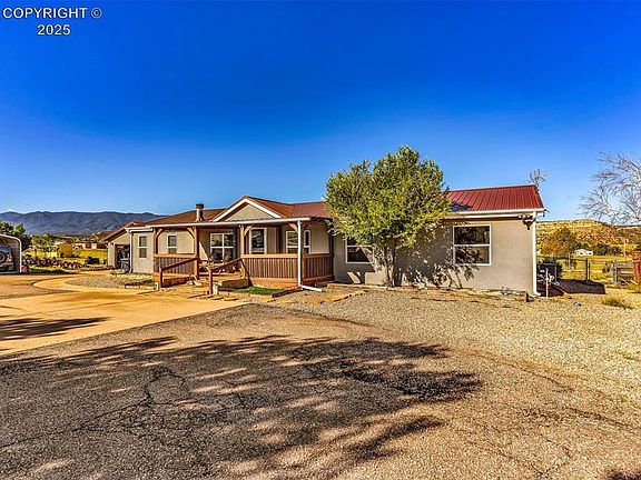 Welcome to 9 Needham Place—an updated 5-bedroom, 3-bath ranch-style home offering 2,077 sq ft of living space on nearly 1.8 acres with sweeping views of the Wet Mountains and Rock Bluffs. Recent upgrades include a new metal roof, stucco, windows, attic and belly pan insulation, plus a new furnace and central A/C for year-round comfort and efficiency.