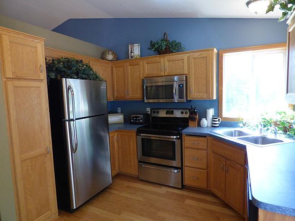 This wonderful 3 bedroom 2 bath townhome is located on a quiet wooded cul de sac and has no association fees. One level living with additional bedroom and bath in the lower level with room to expand. Soaring vaulted-ceilings, new stainless appliance package and gorgeous bamboo flooring as well as large deck to relax in your private backyard await you., Directions Hwy 65 N to county Rd. 5 W to Whiskey Rd. go S. to Nina St. E to Nina Ct. house in cul-de-sac.