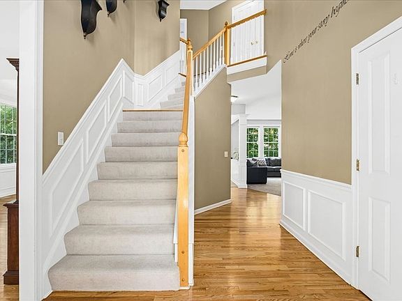 Welcoming front porch is the perfect place to enjoy the lovely & desirable Oakmont Farms neighborhood!*Sweeping foyer greets you & opens to LR/DR combo (for max. entertainment space) or can provide more private study for work-from-home needs* 9 foot ceilings on the main level provide a spacious & dramatic feel!*Crown molding, wainscoting & columns create a sense of sophistication* Gleaming hardwood floors newly refinished*Eat in Kitchen w/ granite countertops, SS appliances, double oven & walk-in pantry open to FR with gas fireplace*Oversized windows provide an abundance of natural light!*Brand new wall-to-wall carpeting on second level*Spacious primary suite offers vaulted ceiling, double vanity, whirlpool tub & large walk-in closet!*Step onto the rear deck & view the lovely landscaping & heated above ground pool w/ deck*Many rooms freshly painted*Young furnace & hot water tank* Unfinished walkout lower level great for exercise, play, clean storage & future finished living space.